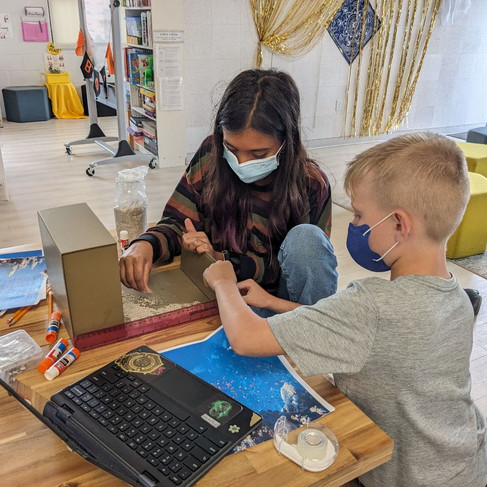 Another major challenge our learners took on was to design a space station model. Some Eagles studied design features from the International Space Station and other world-renowned space crafts to model their own space stations. Their designs have distinct details such as airlocks, control panels, solar panels, furnished living quarters, and even an airlock. They were thrilled to be able to give tours of their space stations to our Exhibition visitors.