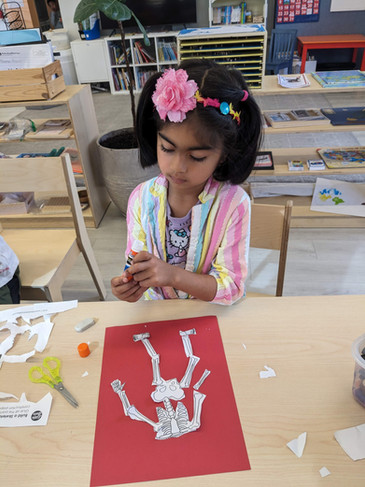 We learned about the skeletal system and the names of the bones, the largest bone and the smallest bone in our body and what is the funny bone and why it is named so. It was a big challenge for them to memorize bone names but after we put them together in a song to be able to do so.